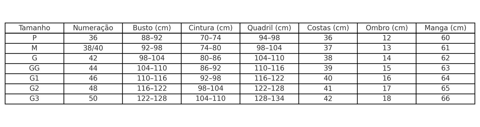 Tamanhos: P | M | G | GG
